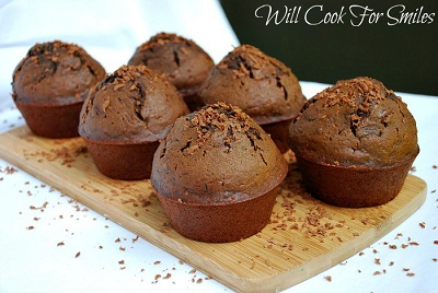 Healthy chocolate zucchini muffins made with whole wheat flour and no butter or refined sugars.