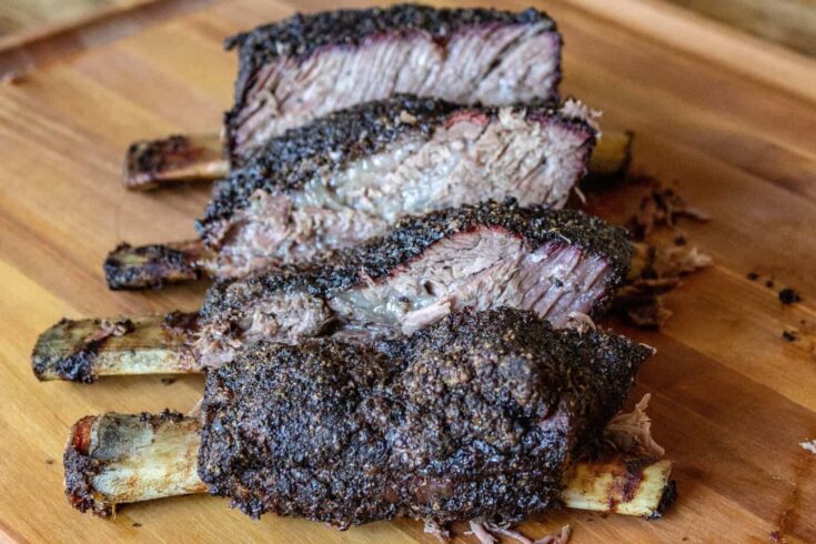 Place your ribs on the smoker and insert the meat thermometer probe in the thickest part of the meat (without touching the bone). Repeat every hour for the first 4 hours. Preheat your smoker to 250°f and toss a few wood chunks onto hot coals for smoking. Let them rest for 10 minutes before cutting and serving. Beefy strands of tender rib meat.